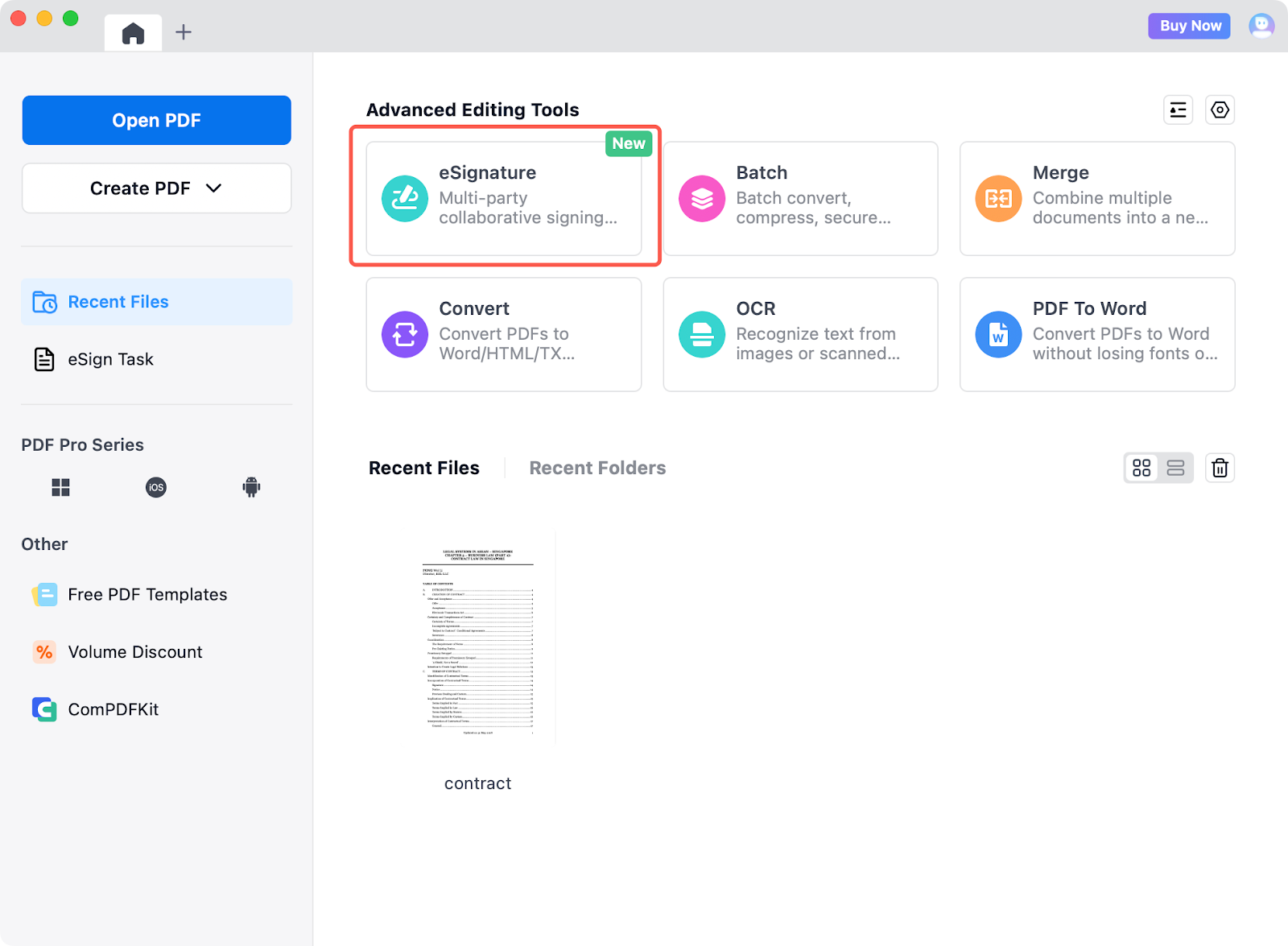 1. Access eSign: Open PDF Reader Pro and click the eSignature entry on the homepage.
